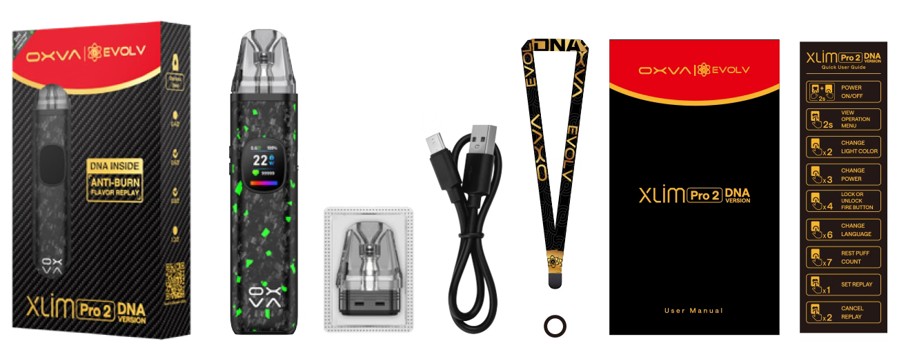 The Oxva Xlim Pro 2 DNA kit comes equipped with the latest Xlim V3 top-filling pods, featuring advanced stainless steel mesh coils (available in 0.6 and 0.8). These coils deliver amplified flavour and consistent vapour production. The Xlim Pro 2 DNA kit is compatible with Xlim V3, Xlim EZ and Xlim prefilled pod series as well.